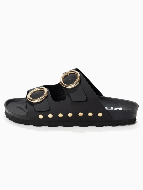 Design: Anatomisch gevormd voetbed, Profielzolen; Type sluiting: Slip; Materiaal: Imitatieleder; Motief: Effen; Materiaal: Imitatieleer; Schoenneus: Open toe; Extra's: Studs, Flexibele zool; Hakhoogte: Platte hak (0-3 cm)