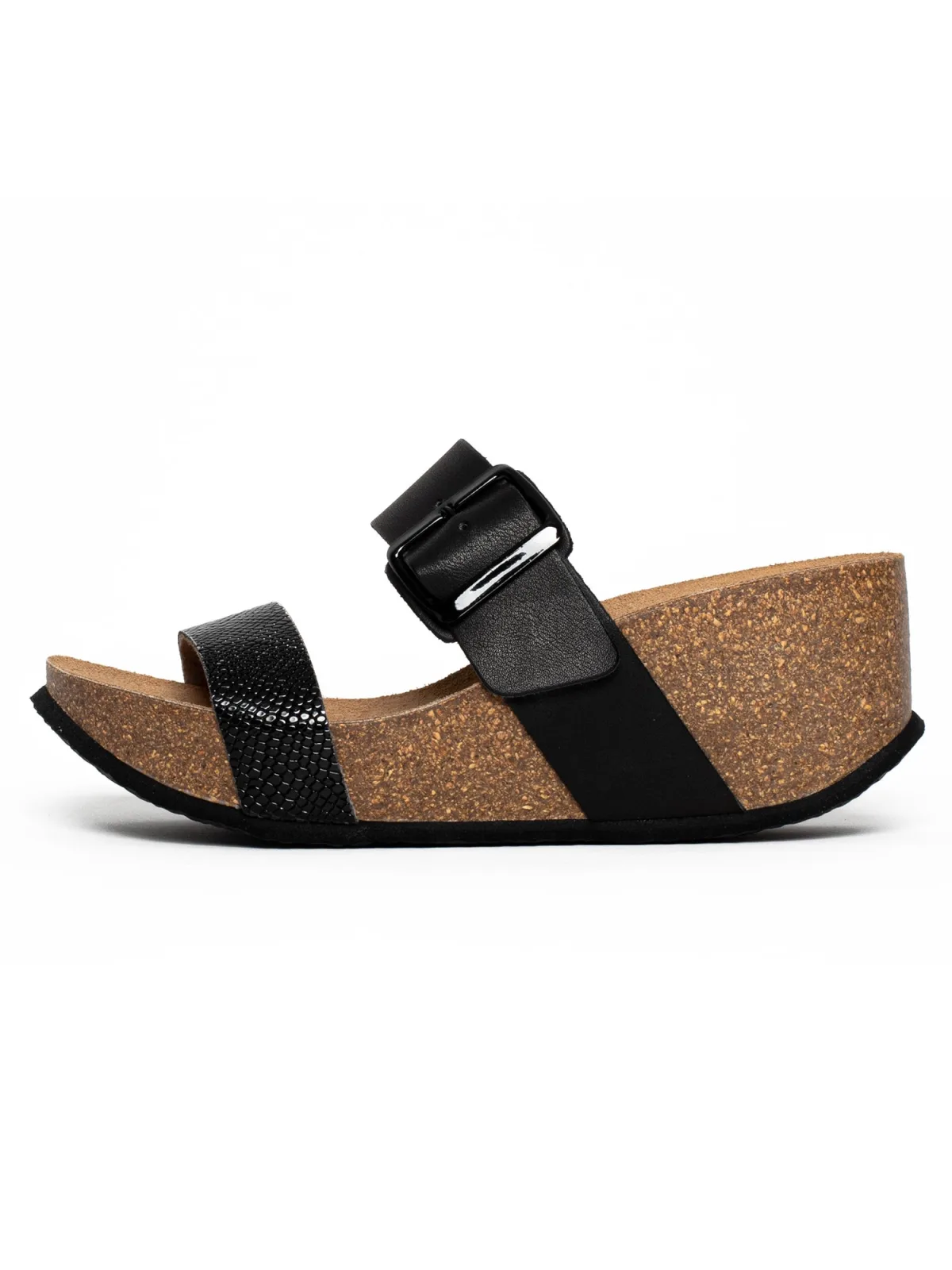 Design: Anti-slip band; Type sluiting: Open; Type hak: Sleehak; Motief: Effen; Plateau: Met plateau; Materiaal: Imitatieleer; Schoenneus: Open toe; Extra's: Label preegdruk; Hakhoogte: Middelhoge hak (3-7 cm)
