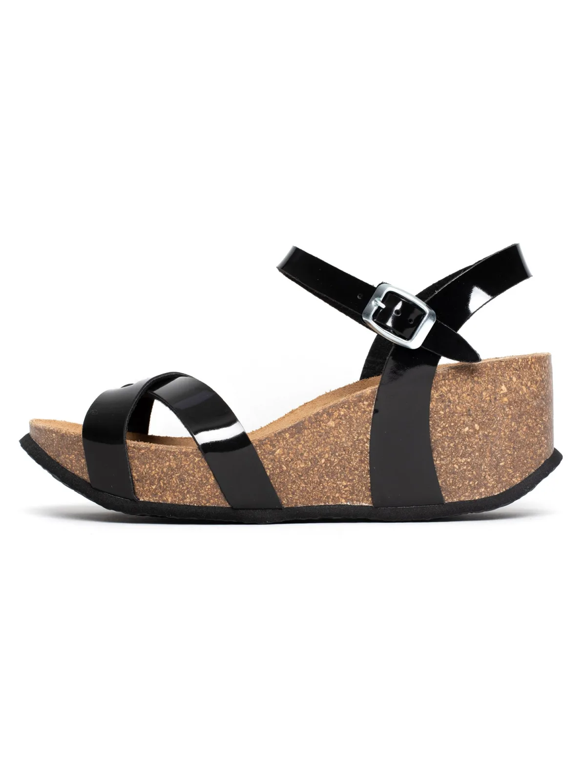 Design: Profielzolen; Type sluiting: Riemsluiting; Type hak: Sleehak; Motief: Effen; Plateau: Met plateau; Materiaal: Imitatieleer; Schoenneus: Open toe; Extra's: Flexibele zool; Hakhoogte: Middelhoge hak (3-7 cm)