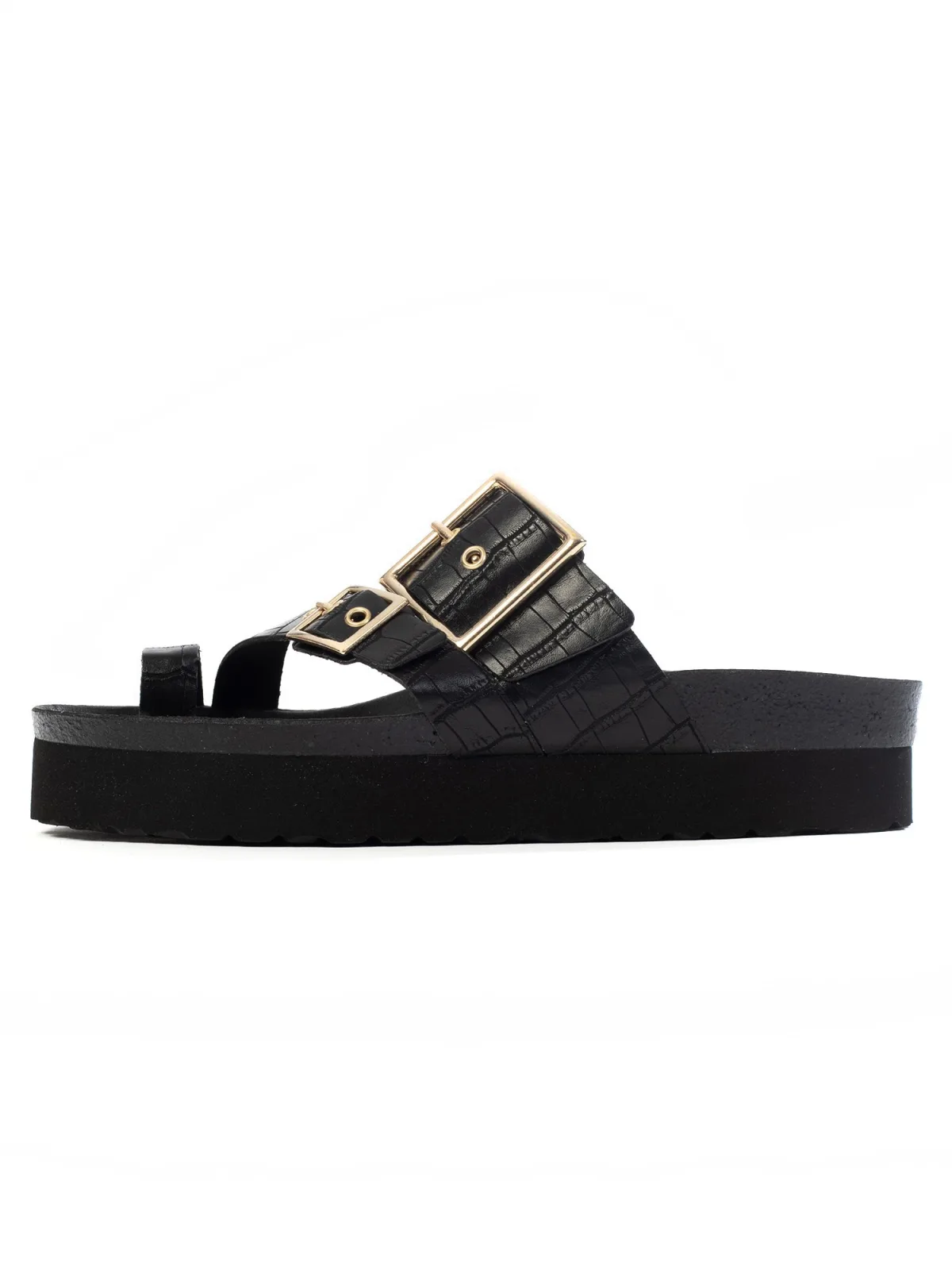Type sluiting: Gesp; Motief: Effen; Plateau: Met plateau; Materiaal: Imitatieleer; Schoenneus: Open toe; Hakhoogte: Platte hak (0-3 cm)