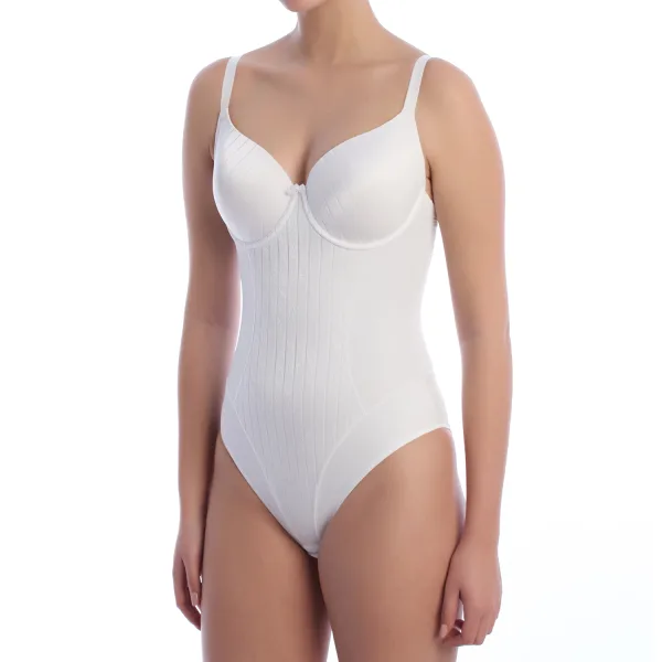 Een geraffineerd en functioneel ontwerp kenmerkt deze shaping bodysuit voor dames, ideaal om het figuur te stylen met een elegante touch. De beugelcups en bloemendetails voegen een vrouwelijk accent toe en zorgen voor een stevige en comfortabele pasvorm. Kenmerken: - Gemaakt van hoogwaardige vormgevende stof die het silhouet styliseert en het figuur verbetert. - Beugelcups met lichte vulling die de buste ondersteunen en verbeteren. - Verstelbare bandjes. - Zachte en ademende materialen die de hele dag voor frisheid en comfort zorgen. - Detail aan de voorkant met bloemenstructuur in de buikstreek. - Glad rugontwerp met volledige bedekking voor een gladmakend effect en geen vlekken onder kleding. Deze damesbody met beugel is perfect voor wie op zoek is naar een shapewear die stijl en functionaliteit combineert, ideaal om te dragen onder nauwsluitende kleding of als onderdeel van een geraffineerde look. Samenstelling: 56% Polyamide, 31% Polyester, 13% Elastaan Onderhoud: Wassen op maximaal 30º. Niet strijken. Geen bleekmiddel gebruiken. Niet in de droger. Niet chemisch reinigen.