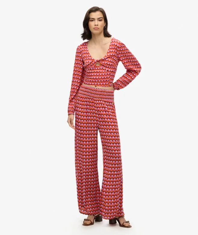 Met onze Beach-broek voeg je moeiteloos wat elegantie toe aan je zomergarderobe. Dankzij het comfortabele, lichte materiaal is deze broek perfect om mee op het strand te loungen, maar ook voor een dagje uit met warm weer is hij ideaal. De losse, wijde pijpen creëren een sierlijk silhouet en houden je koel en trendy, een winnende combo voor de hete zomermaanden. Elastische tailleband Wijde pijpen Kanten inzetstukken
