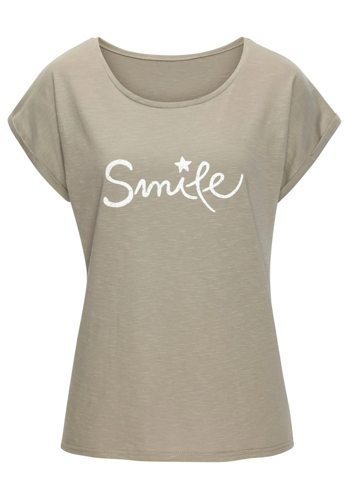 Design: Gevoerde zoom/rand, Gesneden mouw; Materiaal: Jersey; Halstype: Ronde hals; Motief: Tekst print; Extra's: Op staal naden, Voelt zacht aan; Pasvorm: Normale pasvorm; Armlengte: Kwartmouw; Lengte: Normale lengte