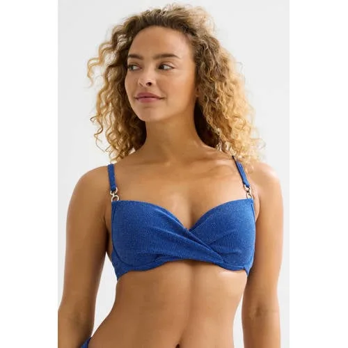 BEACHWAVE seersucker voorgevormde beugel bikinitop met lurex blauw Prijzen