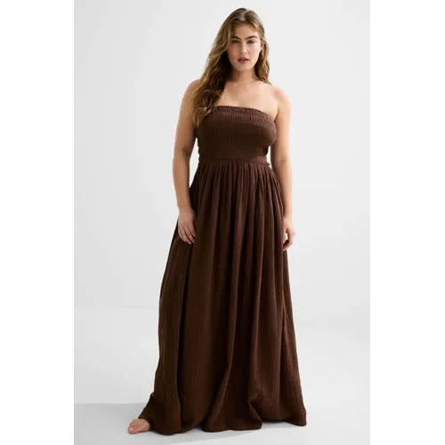 BEACHWAVE strapless mousseline strandjurk bruin