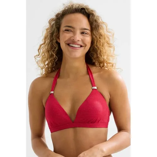 BEACHWAVE voorgevormde halter bikinitop met lurex en textuur rood Prijzen