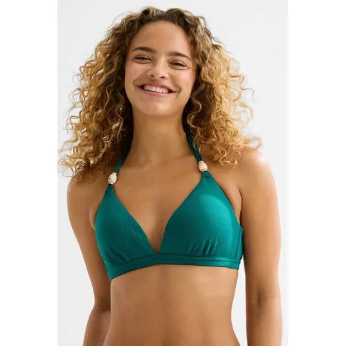 BEACHWAVE voorgevormde halter bikinitop met textuur groen Prijzen