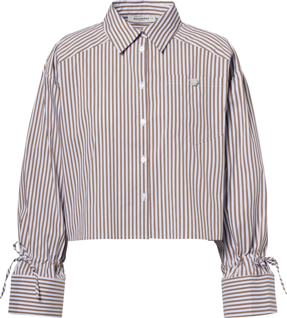 De Blouse Bel van Beaumont is een stijlvolle dames blouse met een casual uitstraling. Uitgerust met een spreidkraag, lange mouwen en een cropped fit, biedt deze blouse zakken op de voorzijde en manchetten met knopen. Het gestreepte patroon maakt het compleet.