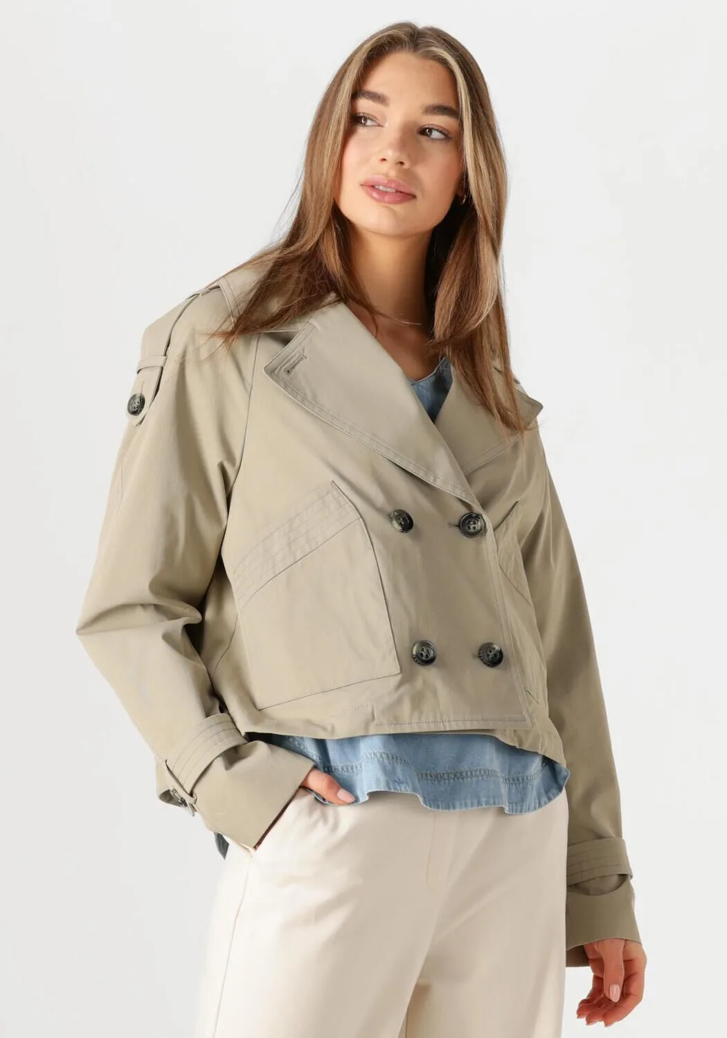Ontdek de veelzijdigheid van de GRACY SHORT TRENCH in een stijlvolle groene tint. Deze trenchcoat van BEAUMONT is perfect voor dames die houden van een tijdloze look met een moderne twist. Draag 'm tijdens een ontspannen stadswandeling of een dagje shoppen met vriendinnen. De korte lengte maakt 'm ideaal om te combineren met een elegante midi-jurk of je favoriete jeans. De klassieke details, zoals de riem en de dubbele knopenrij, geven je outfit een verfijnde touch. Voeg een paar enkellaarsjes toe en je bent klaar om de dag stijlvol tegemoet te treden.