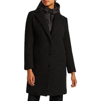 Specificaties: * Pasvorm: loose fit, getailleerd; uitneembaar binnenpaneel met capuchon, aantrekkoord en ritssluiting * Temperatuurregeling: gevoerd * Sluiting: knoopsluiting * Zakken: twee zakken * Manchetten: rechte boorden aan de mouwen * Kleur: zwart * Materiaal: 100% polyester / 100% polyamide