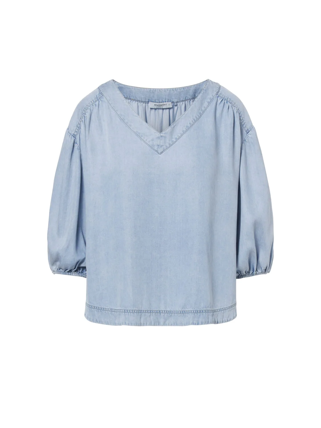 De Top Fae van Beaumont is een casual blouse met een comfortabele pasvorm. De V-hals en 3-kwartsmouwen met elastische manchetten zorgen voor een stijlvolle uitstraling. Perfect voor elke gelegenheid, deze effen blouse biedt een toegankelijke en modieuze keuze voor de moderne vrouw.