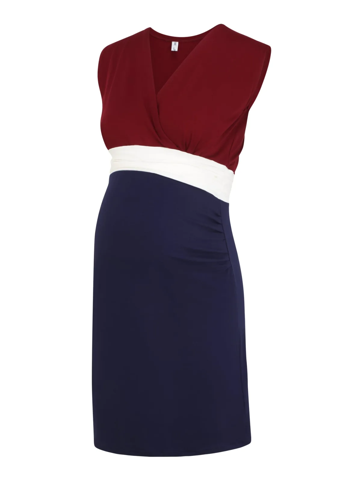 Design: Gevoerde zoom/rand, Rechte zoom, Wikkel-look; Materiaal: Viscose; Halstype: V-hals; Motief: Color-Blocking; Soort bandjes: Brede bandjes; Details: Gedrapeerd, Wikkel design; Extra's: Op staal naden, Lichte stof; Borstvoedingsfunctie: Zonder borstvoedingsfunctie; Lengte: Knielengte; Pasvorm: Slanke pasvorm; Armlengte: Mouwloos