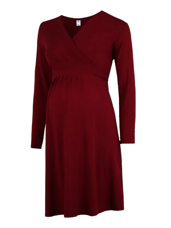 Design: Gevoerde zoom/rand, Wikkel-look, Om te knopen/binden; Materiaal: Viscose; Halstype: V-hals; Motief: Effen; Details: Gedrapeerd, Wikkel design; Extra's: Op staal naden, Gladde stof, Lichte stof; Borstvoedingsfunctie: Met borstvoedingsfunctie; Lengte: Knielengte; Pasvorm: Normale pasvorm; Armlengte: Lange mouw