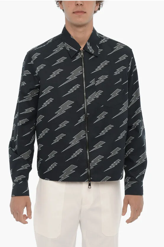 Stel Notificatie voor Product in: Bedrukt overshirt met ritssluiting in blauw - €275,00