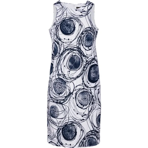 Mouwloze zakjurk van geweven stof met print. Ronde halslijn met figuurnaden op de buste en 2 zijzakken. Verborgen ritssluiting aan de achterkant, ton sur ton.