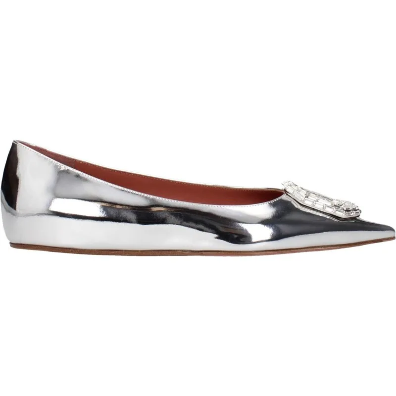 Stap naar buiten, schitter, straal! Deze zilveren leren ballerina's voegen directe glamour toe aan elke dag. Gemaakt in Italië, brengen ze een scherpe, moderne uitstraling aan elke outfit. De met kristallen versierde gesp is het handtekening van het merk en vangt elk licht. Geniet van de onderhoudsvriendelijke constructie, perfect voor een leven in beweging. Deze ballerina's bieden technologie voor comfort de hele dag door, zodat je van dag naar nacht kunt dansen. Een vleugje luxe, klaar voor alles. Maak ze schoon met een zachte doek om ze sprankelend te houden.
