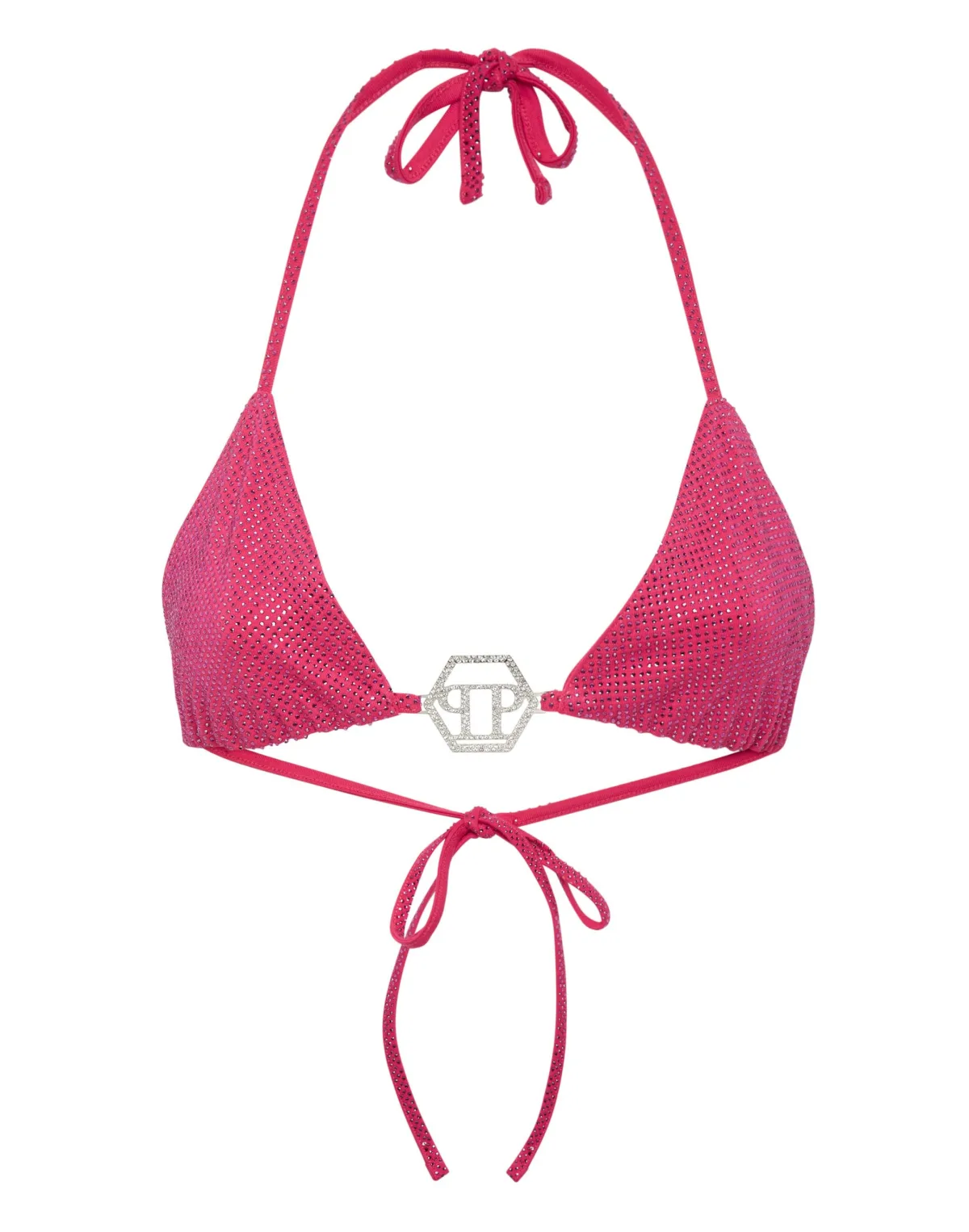 Verfraaid Ontdek sexy glamsferen met dit bikinitopje van jersey met strassteentjes. Bekijk de details. Driehoekig topje met bandjes van jersey met juwelen Verstelbare bandjes Zeshoekig juweel in de nek