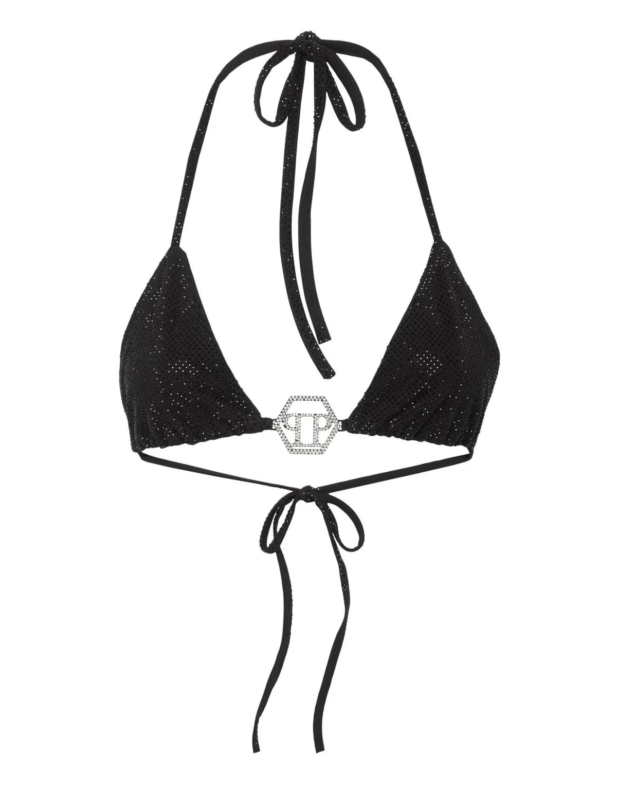 Verfraaid Ontdek sexy glamsferen met dit bikinitopje van jersey met strassteentjes. Bekijk de details. Driehoekig topje met bandjes van jersey met juwelen Verstelbare bandjes Zeshoekig juweel in de nek