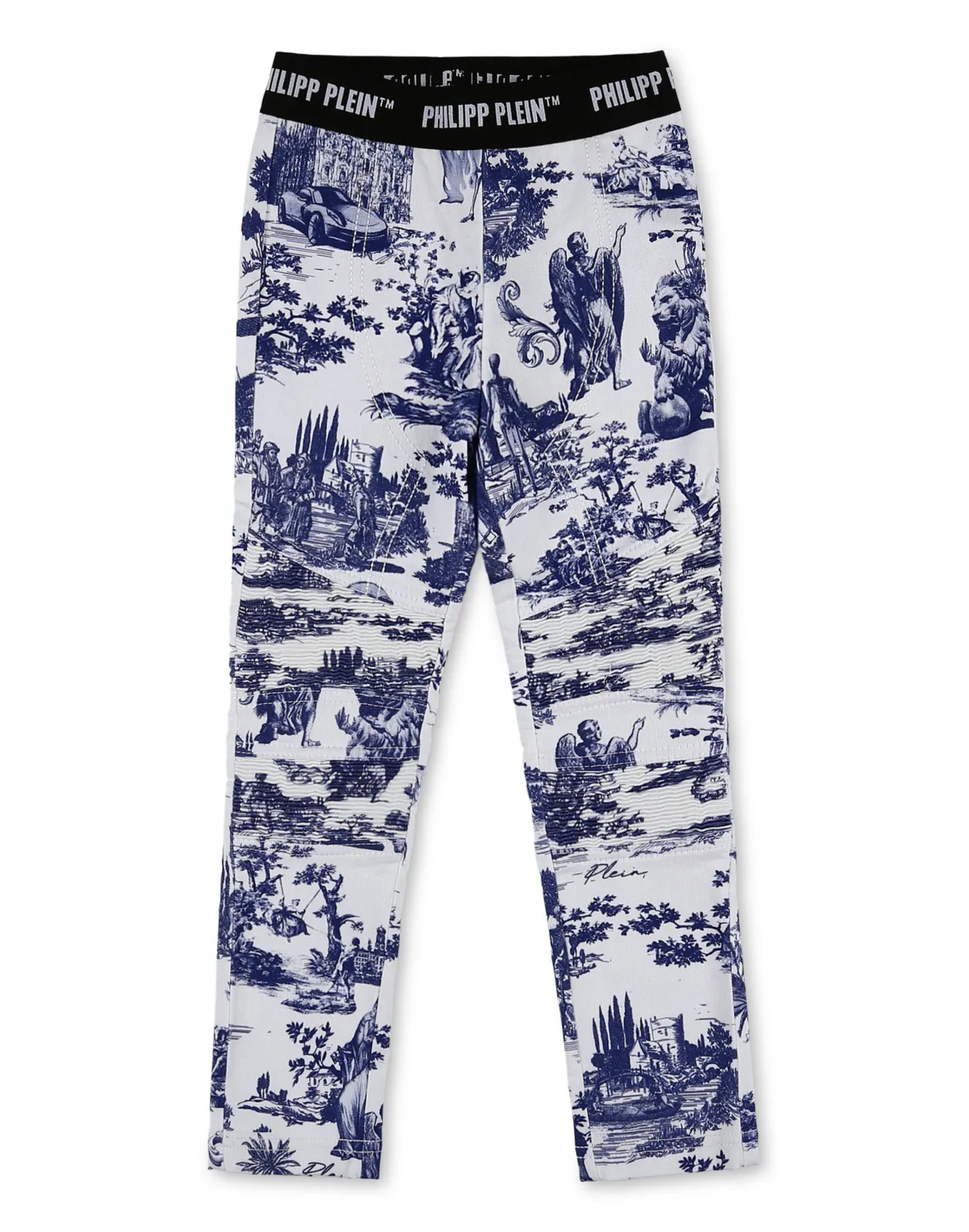 En-PLEIN-air print super stretch denim leggings. Ribbed details. Elastic waistband with jacquard woven logo.
