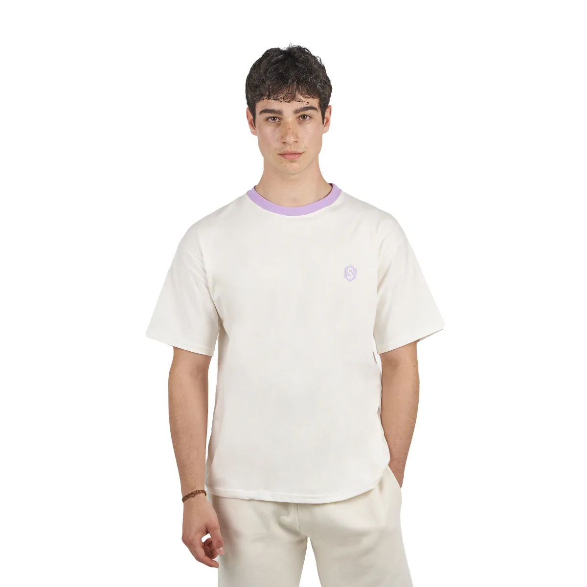 T-shirt met korte mouwen. Ronde hals met geribde afwerking. Oversized model. Merkopdruk op voor- en achterkant. Naden in toon zichtbaar. Samenstelling: 96% Katoen, 4% Elastaan Onderhoud: - Wassen op max. 40ºC. - Geen bleekmiddel gebruiken. - Strijken op lage temperatuur. - Niet chemisch reinigen. - Geen droger gebruiken.