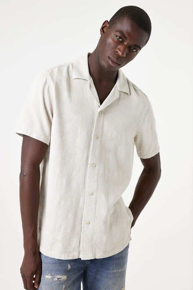 Overhemd van jaquardgeweven katoen. Met dit item maak je je look af. Dit overhemd heeft korte mouwen, een kraagje, een knoopsluiting en een regular fit. Dit item is gemaakt van 55% katoen en 45% viscose. Better Cotton is een initiatief dat zich wereldwijd inzet voor betere omstandigheden in de katoenindustrie.