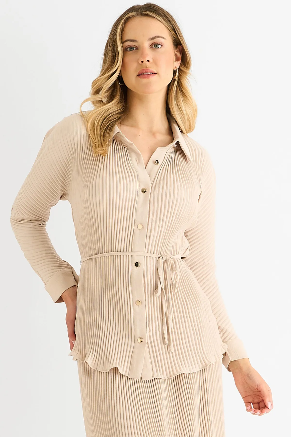Beige plissé overhemd met knopen