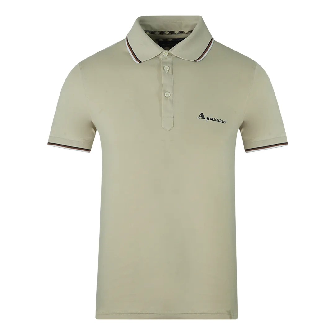 Aquascutum Brand Logo Beige Polo Shirt. Aquascutum Brand Logo Beige Polo Shirt. Branded Logo, Short Sleeves. Stretch Fit 95% Cotton 5% Elastane. Regular Fit, Fits True To Size. QMP024 10