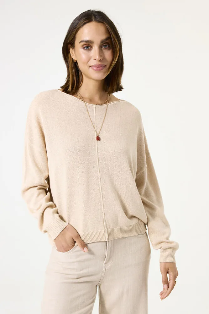 Trui met wijde halslijn. Een fijn item als deze mag niet ontbreken in jouw garderobe! Deze trui heeft lange mouwen en een dropped shoulder fit. Dit item is gemaakt van 50% polyester, 30% viscose en 20% linnen.