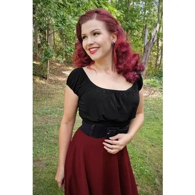 ''Show those sexy shoulders, baby!'' Deze beauty heeft een geplooide buste en korte mouwtjes met elastiek die off shoulder gedragen kunnen worden. Uitgevoerd in een glad en soepel, stretchy, zwart slinky stofje dat heerlijk draagt! * Korte mouwtjes met elastiek * Mouwtjes kunnen off shoulder gedragen worden * Geplooide buste * Gevoerd bij de buste * Lang genoeg om op een normale heupbroek te dragen
