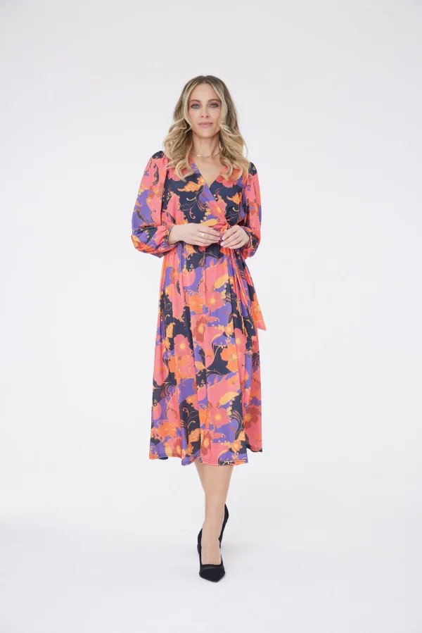 Deze levendige jurk met bloemenprint is volledig gevoerd met een lichte, zachte, rekbare bovenstof die een elegante afwerking geeft. Deze midi-jurk is veelzijdig en perfect voor alle gelegenheden en evenementen. De mooie print, de lange ballonmouwen en de zwierige silhouet dragen bij aan de statement uitstraling van de jurk. De Bella-jurk heeft een flatterend V-halsontwerp. Draag het casual met witte sneakers of kleed het up met hakken voor je volgende feestje of bruiloft. Lange lengte, zwierig, trendprint. 95% Polyester, 5% Elastaan Voering: 100% Polyester Machinewas op 30°
