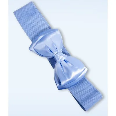 Een schattige riem en een aanvulling op elke outfit! Deze prachtige brede stretchriem hoort in de taille gedragen te worden voor een mooi gedefinieerd silhouet, oh la la! Uitgevoerd in korenbloemblauw elastiek met een opvallende, volle satijnachtige strik die mooi in vorm blijft. Geweldig in combinatie met onze jurken en rokken! * Vaste strik * Sluit d.m.v. 2 drukknoopjes