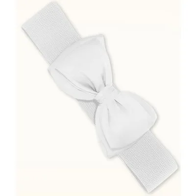 Een schattige riem en een aanvulling op elke outfit! Deze prachtige brede stretchriem hoort in de taille gedragen te worden voor een mooi gedefinieerd silhouet, oh la la! Uitgevoerd in sneeuwwit elastiek met een opvallende, volle satijnachtige strik die mooi in vorm blijft. Geweldig in combinatie met onze jurken en rokken! * Vaste strik * Sluit d.m.v. 2 drukknoopjes