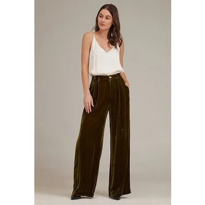 Bella Dahl Pleated Wide Leg Trouser Olive Gold