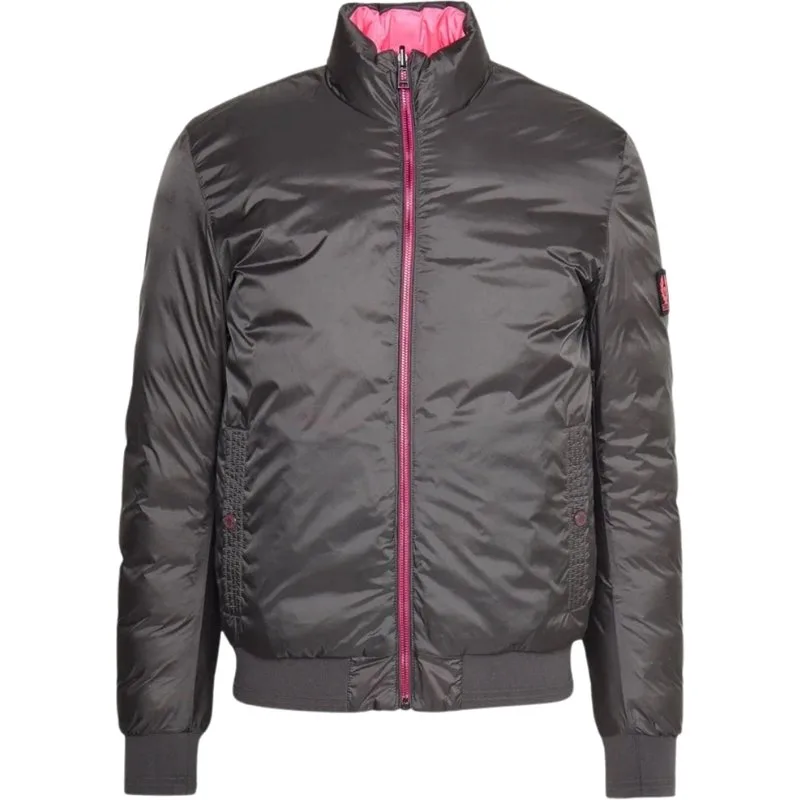Belstaff Flash Circuit Granite Grey Reversible Down Jacket. Experience the ultimate in versatility and style with the Belstaff Grey Jacket. This reversible down jacket offers both warmth and fashion-forward design, allowing you to effortlessly transition from a casual day look to a chic evening ensemble. Stay cozy and look amazing with this must-have jacket!. Down Jacket, Pink On The Reversible, Material: 100% Polyamide, Filling: 90% White Duck Down, 10% White Duck Feather. Branded Badge On Left Sleeve, Lightweight, down-filled jacket, Reversible wear with neon detailing, Packs away into a bag, Exposed front-zip closure, Two snap-closure side pockets, Phoenix patch on the sleeve. Reverisble Jacket, Zip Closure, Grey Jacket, Pink Jacket. Style: Reversible Flash Circuit Jacket
