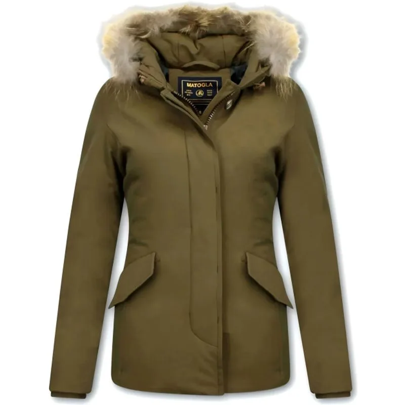 Korte Winterjassen met Bontkraag Dames - Vrouwen Jas Donkergroen - Specificaties: - Korte Winterjassen met Bontkraag Dames- Vrouwen Jas Donkergroen- Kleur: Zie Afbeelding - Lengte: Kort- Pasvorm: Normaal - Sluiting: Rits met Knopen- Materiaal: Polyester- Voering: 75% Polyester 25% Katoen- Lichaam voering: 100% Katoen- Zakken: 2 Jaszakken- Collectie: Winter- Standaard Bontkraag: KLEIN - Bontkraag: Afhaalbaar- Wasvoorschrift: Machinewas 30 graden / Stomerij- Beschikbare Maten: XS - S - M - L - XL Let op: De bontkraag is een natuurproduct en hierdoor heeft ieder stuk bont zijn eigen unieke uitvoering. Het bont kan dus afwijken in volheid van vacht en in kleur dan op de afbeelding weergegeven.
