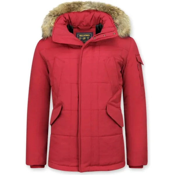 Beluomo Rode winterjas grote bontkraag parka Prijzen