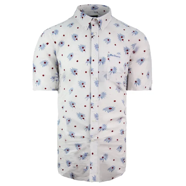 Ben Sherman Oxford Bedrukte Top Korte Mouw Wit Heren Overhemd Katoen 0062921 003