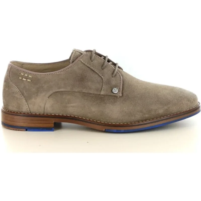 De Berkelmans Posadas is een stijlvolle en moderne nette herenschoen die perfect past binnen een zakelijke én smart-casual garderobe. Uitgevoerd in hoogwaardig taupe suède, straalt deze veterschoen klasse, verfijning en eigentijdse elegantie uit. De subtiele stiksels en de contrasterende zool met blauw detail geven de schoen een modieuze twist zonder zijn tijdloze karakter te verliezen.Het bovenwerk is vervaardigd van soepel suède leer dat zich comfortabel naar de voet vormt. Dankzij de wijdtemaat G½ biedt deze herenschoen een normale tot licht bredere pasvorm, waardoor hij prettig aanvoelt tijdens lange werkdagen of formele gelegenheden.De klassieke vetersluiting zorgt voor een optimale aansluiting om de voet. Bovendien beschikt de Posadas over een uitneembaar voetbed, waardoor de schoen geschikt is voor het dragen van eigen steunzolen. Ideaal voor heren die extra ondersteuning wensen zonder in te leveren op stijl.De combinatie van een nette leren uitstraling met een licht sportieve zool maakt deze schoen veelzijdig inzetbaar. Draag hem onder een maatpak voor een zakelijke look of combineer hem met een chino of jeans voor een verzorgde casual uitstraling. Bent u op zoek naar een taupe suède herenschoen met uitneembaar voetbed die comfort en klasse samenbrengt? Dan is de Berkelmans Posadas een uitstekende keuze.