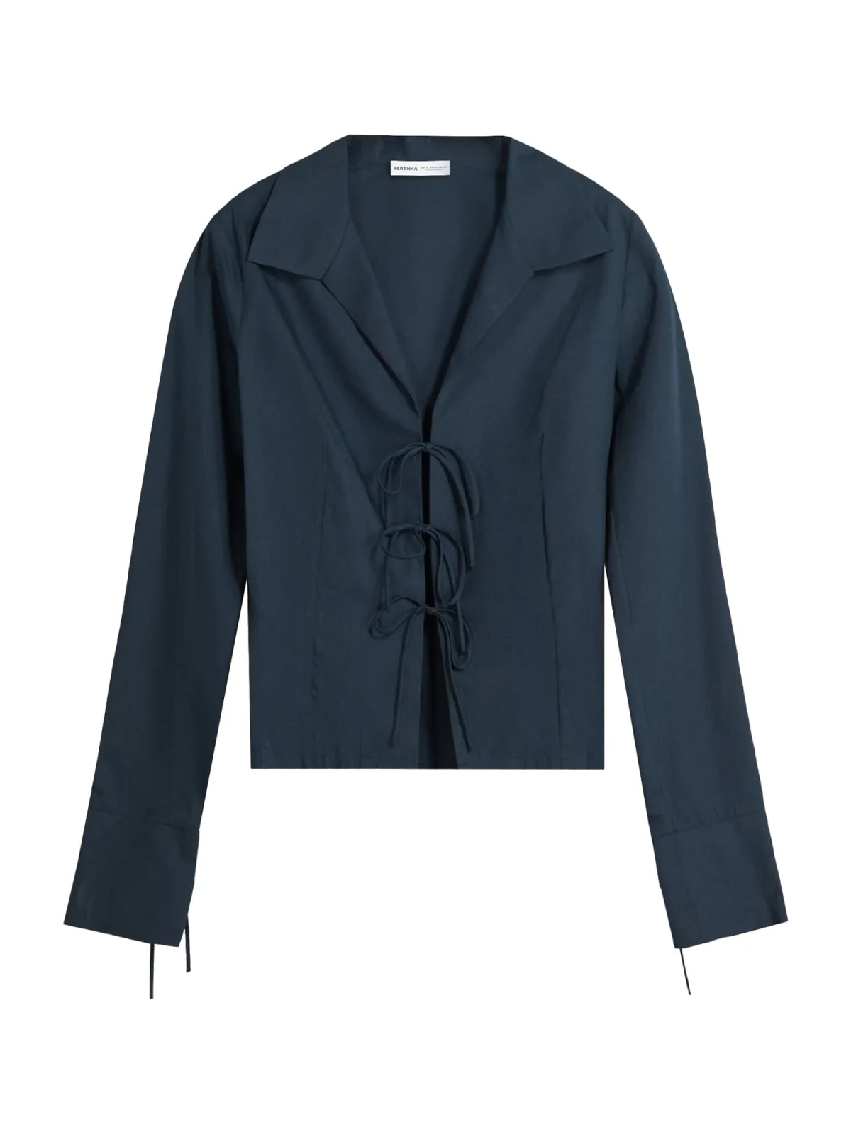 Blouse type: Klassieke blouse; Design: Gevoerde zoom/rand, Revers kraag, Om te knopen/binden; Materiaal: Katoen; Motief: Effen; Extra's: Op staal naden, Voelt zacht aan; Pasvorm: Normale pasvorm; Armlengte: Lange mouw; Lengte: Normale lengte