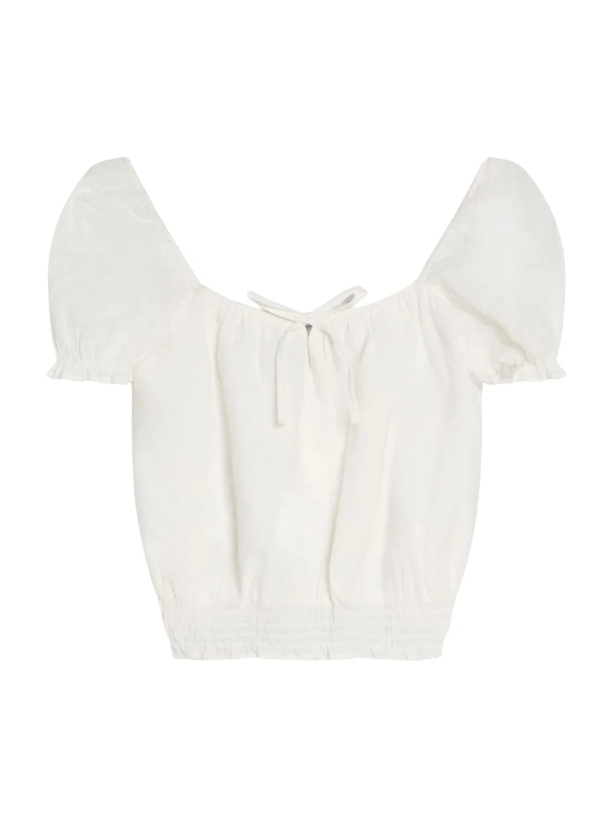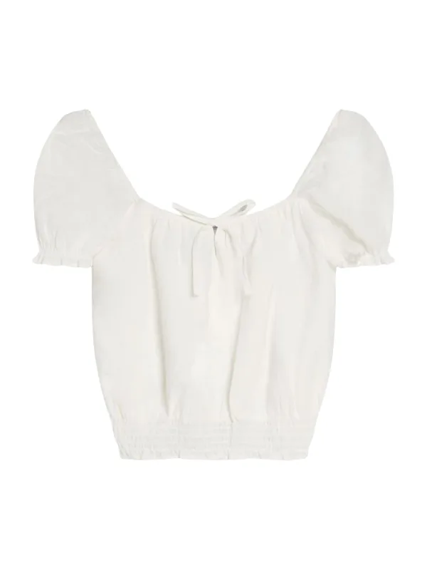 Blouse type: Blouseshirt; Design: Elastische taille/zoom, Pofmouwen, Om te knopen/binden; Materiaal: Katoen; Motief: Effen; Details: Gedrapeerd; Extra's: Op staal naden, Voelt zacht aan; Pasvorm: Normale pasvorm; Armlengte: Kwartmouw; Lengte: Korte pasvorm