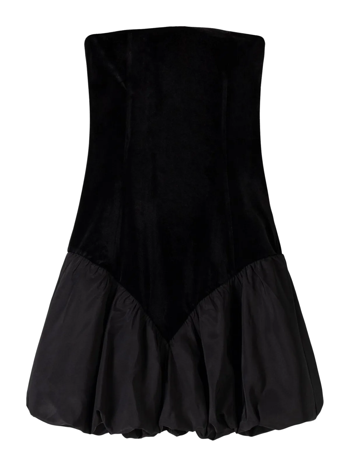 Design: Flare, Materiaal mix; Type sluiting: Ritssluiting; Materiaal: Fluweel/Nicky Velours; Motief: Effen; Soort bandjes: Bandeau; Details: Gedrapeerd; Extra's: Op staal naden, Voelt zacht aan; Lengte: Kort/mini; Snit: Figuur omarmend; Pasvorm: Aansluitende pasvorm; Armlengte: Mouwloos