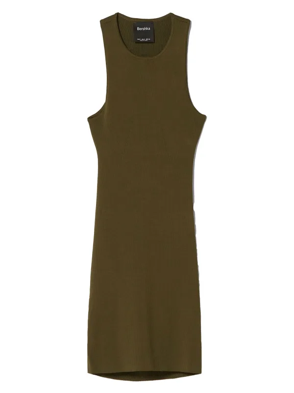 Bershka Gebreide jurk kaki / zilver Prijzen