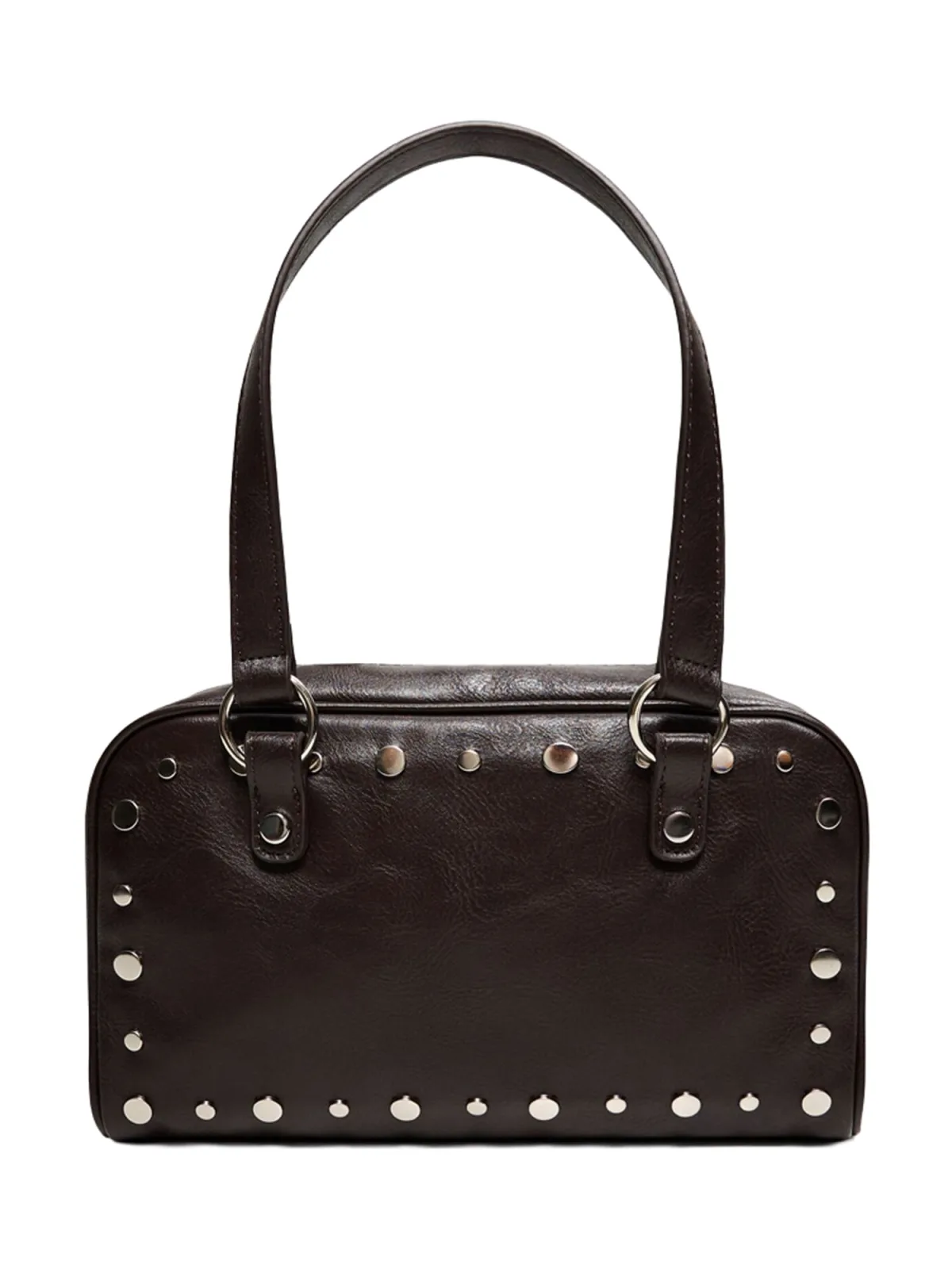 Design: Ruim hoofdvak, Sealed edges; Type sluiting: Ritssluiting; Materiaal: Imitatieleder; Motief: Effen; Materiaal: Imitatieleer; Extra's: Studs, Stevige stof; Maat: Klein; Hengsellengte: Korte schouderriemen