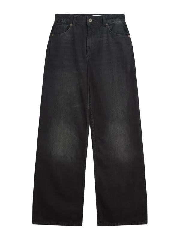 Design: Gevoerde zoom/rand, Ritssluiting, 5-pocket-style, Knop sluiting; Type sluiting: Ritssluiting; Materiaal: Denim; Motief: Effen; Extra's: Studs, Gewassen effect, Vaste grip, Riemlussen; Wassing: Heavy washed; Lengte: Lang/maxi; Pasvorm: Baggy; Taillehoogte: Low waist
