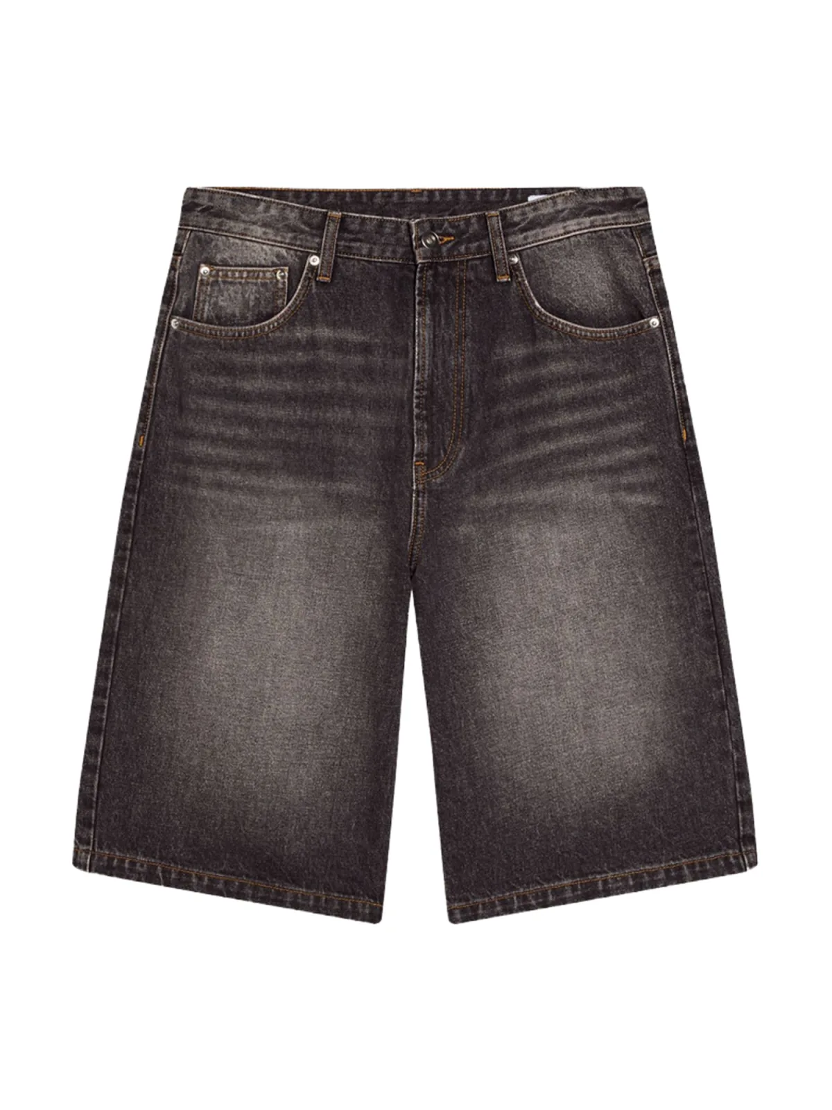 Design: Gevoerde zoom/rand, Ritssluiting, 5-pocket-style; Type sluiting: Ritssluiting; Materiaal: Denim; Motief: Effen; Extra's: Studs, Contrasterende naden, Riemlussen; Wassing: Heavy washed; Lengte: Knielengte; Pasvorm: Normale pasvorm; Pasvorm: Regular