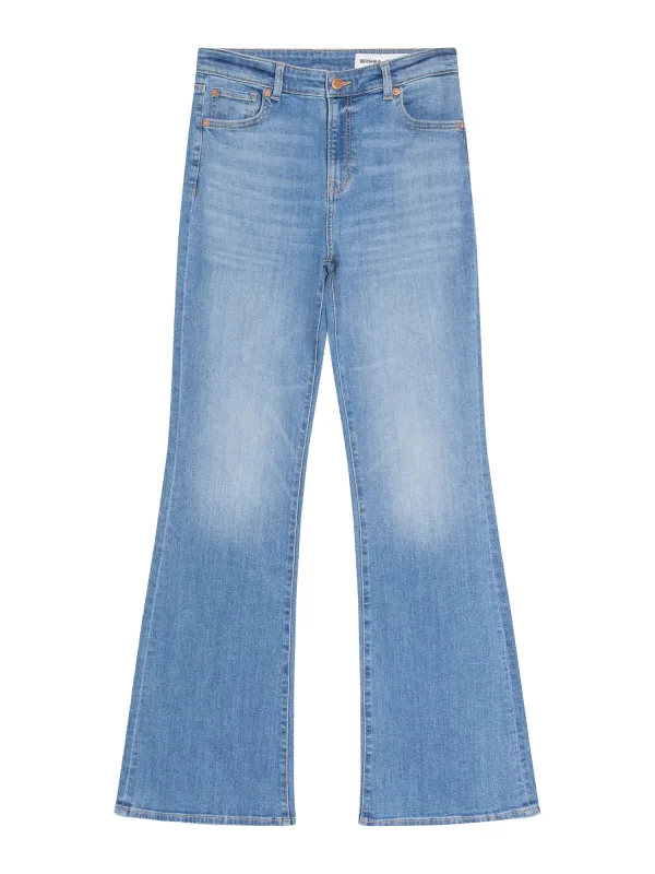 Design: Gevoerde zoom/rand, Ritssluiting, 5-pocket-style; Type sluiting: Ritssluiting; Materiaal: Denim; Motief: Effen; Extra's: Studs, Contrasterende naden, Vaste grip; Wassing: Light washed; Lengte: Lang/maxi; Pasvorm: Flared; Taillehoogte: Mid waist