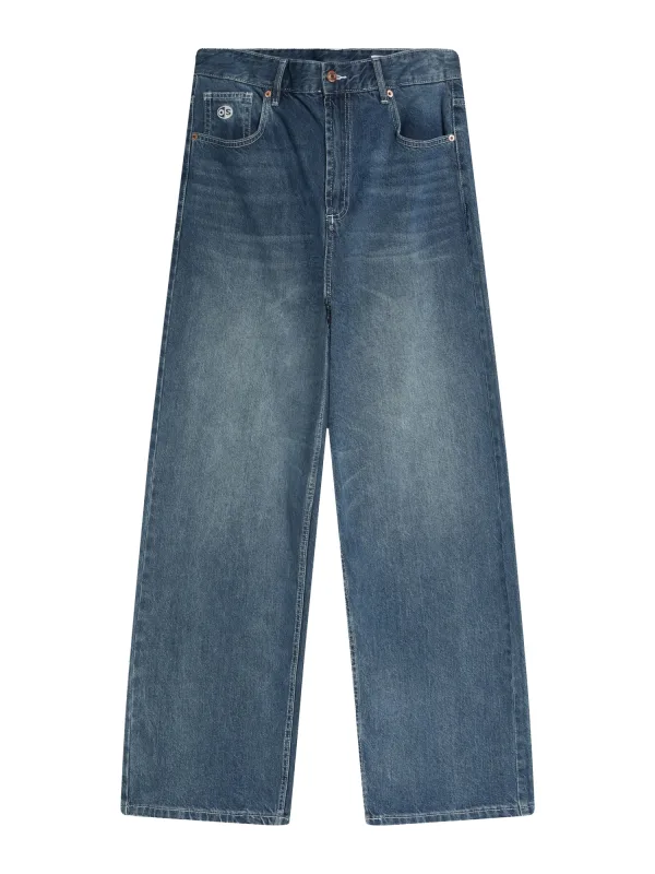 Design: Ritssluiting, 5-pocket-style; Type sluiting: Knoopsluiting; Materiaal: Denim; Motief: Effen; Extra's: Studs, Riemlussen; Wassing: Heavy washed; Lengte: Lang/maxi; Pasvorm: Baggy