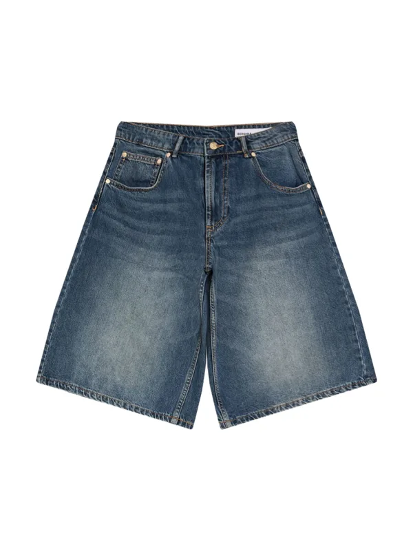 Design: Gevoerde zoom/rand, Ritssluiting, 5-pocket-style; Type sluiting: Ritssluiting; Materiaal: Denim; Motief: Effen; Extra's: Studs, Contrasterende naden, Riemlussen; Wassing: Heavy washed; Lengte: Knielengte; Pasvorm: Baggy; Taillehoogte: Mid waist