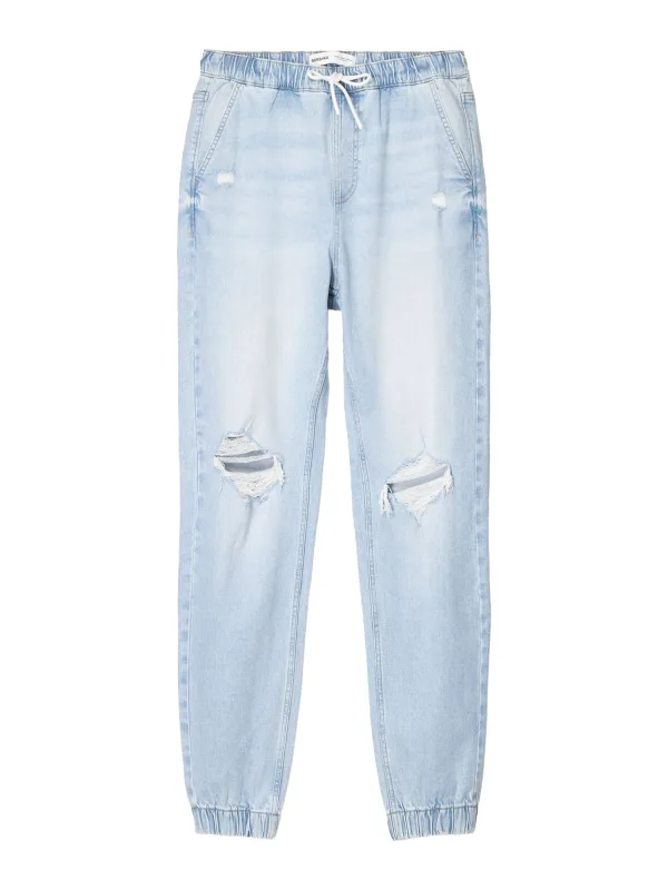 Design: Gevoerde zoom/rand, Taille met trekkoord, Elastische taille/zoom, Achterzak, Zakken aan de zijkant; Materiaal: Denim; Motief: Effen; Extra's: Contrasterende naden, Gewassen effect, Vaste grip; Wassing: ripped; Lengte: Lang/maxi; Pasvorm: Tapered