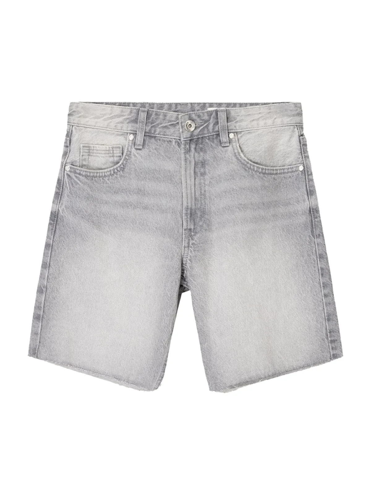 Design: Gefranjerde zoom, Ritssluiting, 5-pocket-style; Type sluiting: Ritssluiting; Materiaal: Denim; Motief: Effen; Details: Franjes; Extra's: Gewassen effect, Riemlussen; Wassing: Light washed; Lengte: Knielengte; Pasvorm: Loosefit; Taillehoogte: Mid waist